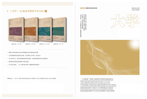 《大学》(研究版)(社会科学版):开展经济学、政治学、法学、历史学、社会学等学科研究,主要栏目:总编推荐、综艺大观、流行趋势、人文色域、优秀作品、专家视点、锦绣文章、人物生活、学术争鸣、研究生园地等;《大学》(自然科学版):开展天文学、物理学、化学、地球科学、生物学等学科研究,主要栏目:专题特稿、文献综述、数学物理、天文科学、生物化学与材料科学等;《大学》(教学与教育版):开展高等教育、师范教育研究和反映教育改革与发展以及相应实践成果的综合性学术期刊,主要栏目:专题特稿、高端访谈、学科教学、教学艺术、教学管理、高校思政、人才培养、教师发展等。本刊系中文科技期刊数据库、中国核心期刊(遴选)数据库、中国学术期刊(光盘版)数据库、中国学术期刊综合评价数据库、中国知网(CNKI)期刊全文数据库、万方数据知识服务平台等大型权威学术数据库收录期刊。在本刊发表的论文可在职称评定、晋升考核以及岗位竞聘中起到重要科研认定作用。